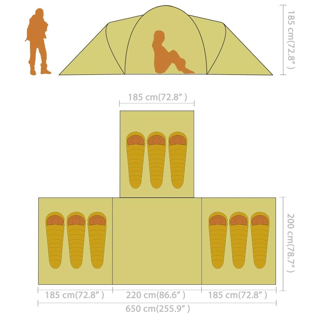This large tent is perfect for all your camping occasions! It has a comfortable interior suitable for camping outdoors, travelling and for on vacation at a campsite. This tent is large enough to accommodate up to 9 people. It features 3 different compartments, each of which offering ample space to accommodate 3 people at maximum.